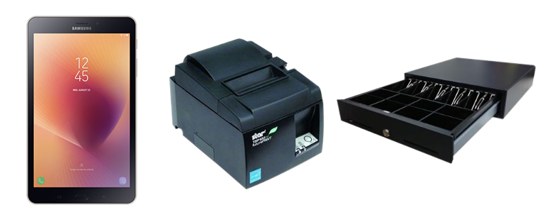 - Receipt Printer 58 mm thermal paper with drawer and tablet stand